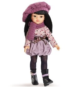 Liu est une ravissante poupée mannequin asiatique vêtue d'un ensemble mauve avec bottines et collants.