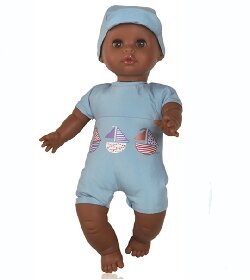 Poupée Bubble garçon africain tenue bleue signée Paolareina.