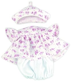 Un joli ensemble Cabriole Petitcollin comprenant robe avec collants et joli chapeau assorti pour poupée 25cm.