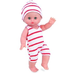 Poupon Petit Câlin 28 cm A la Plage, corps en vinyle souple parfumé , yeux dormeurs.