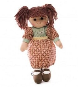 Son corps en tissus est souple et ses cheveux sont en laine.