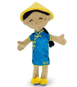 Poupée chinoise Lin en tissu Trudi de 30cm vêtue de sa robe traditionnelle.