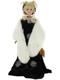 Poupée de porcelaine 1900 robe noire étole blanche